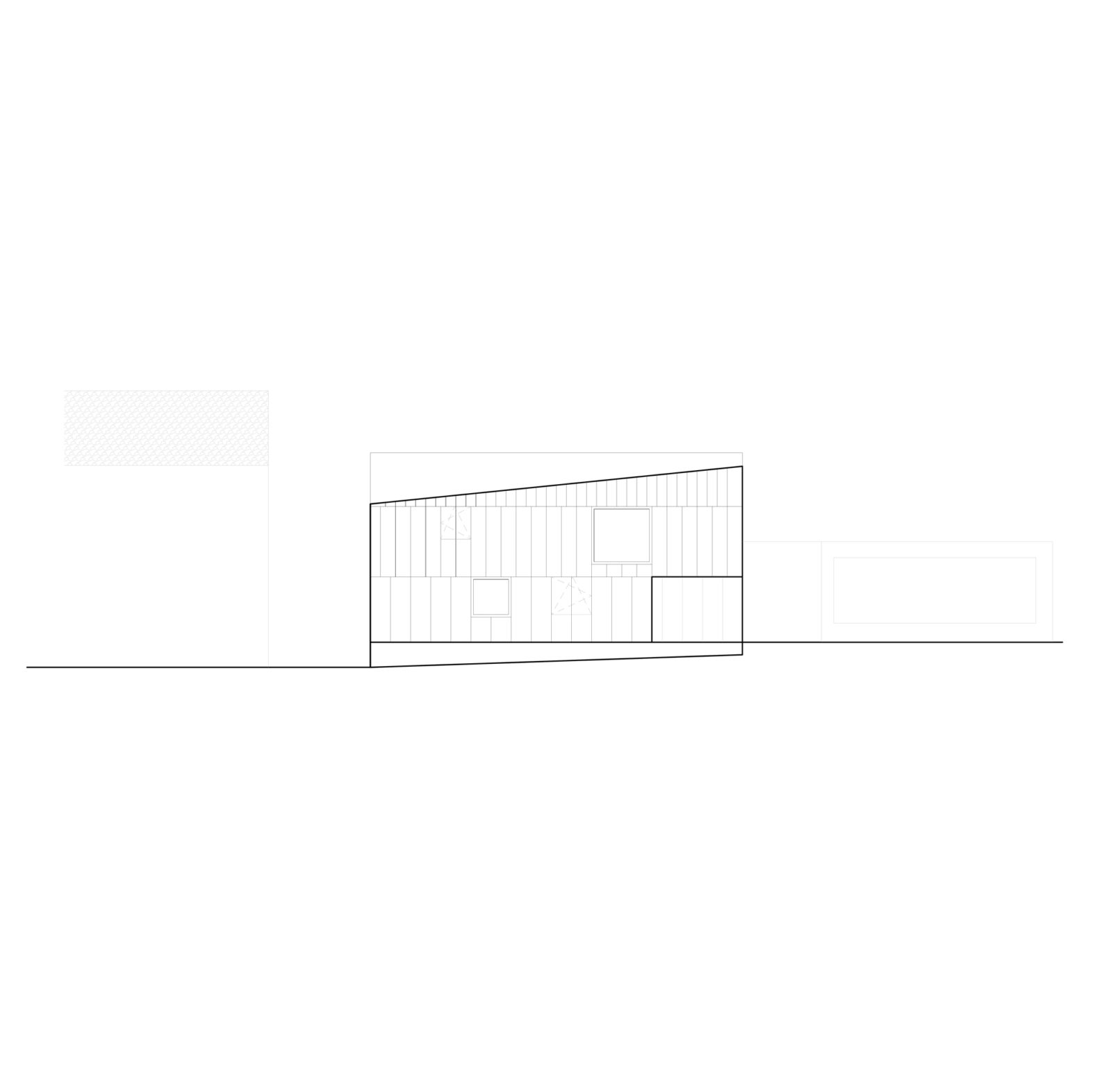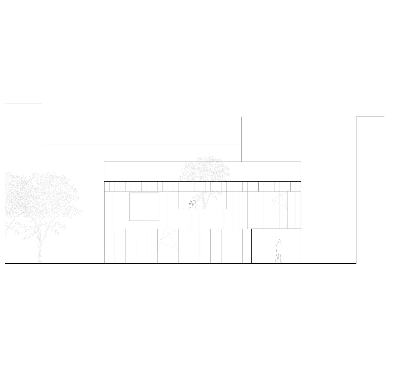 The project is thought as a whole using a unitary materialization which adapts to the different uses of the program. The building has a facade consisting of wooden panels, punctuated by differentiated openings for the spaces of the nursery and canteen. The ground floor, of a more public nature, is open through large windows. The first floor, on the other hand more closed, is treated with punctual windows which frame the views and give a more private character to the children’s spaces.