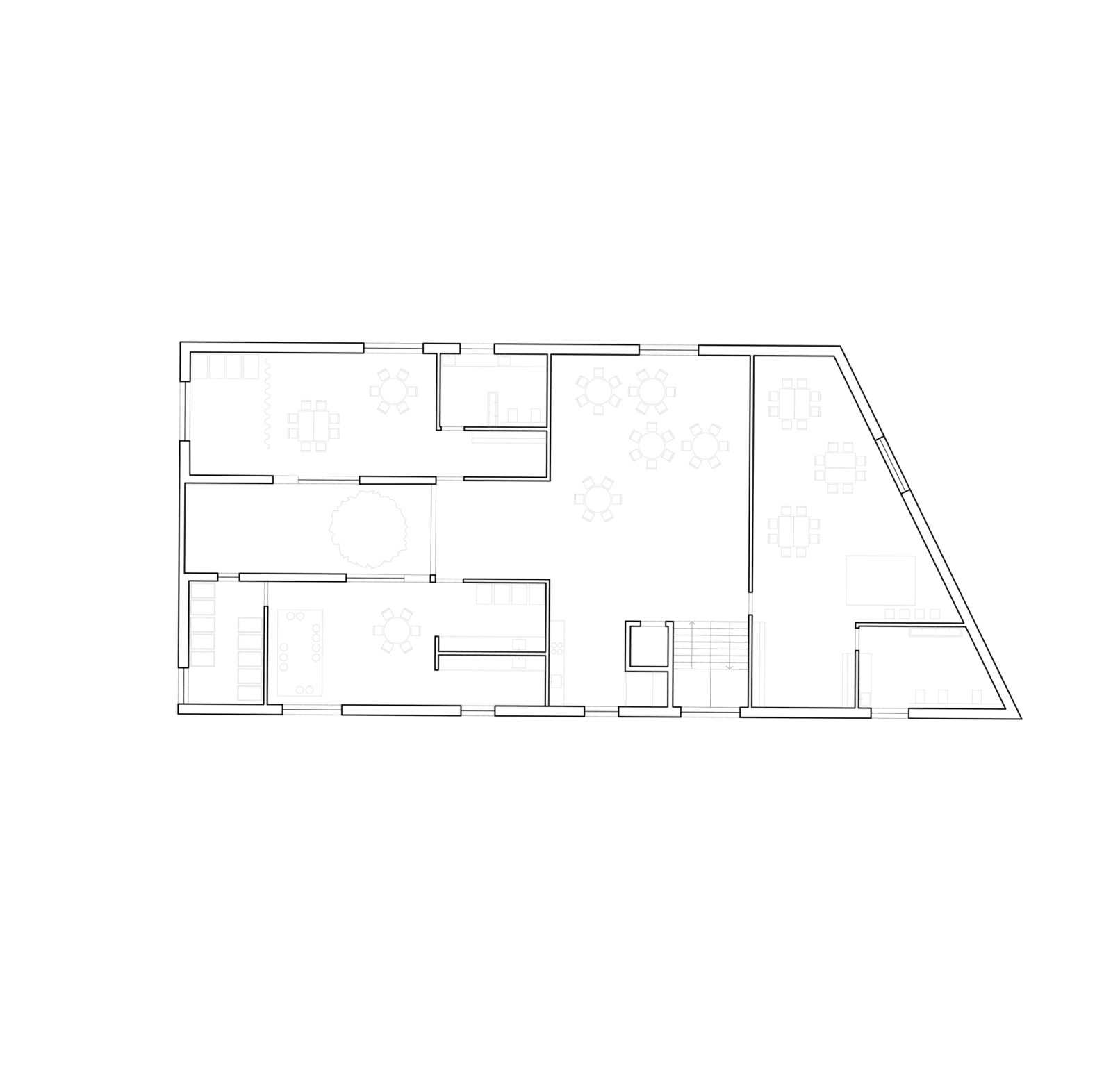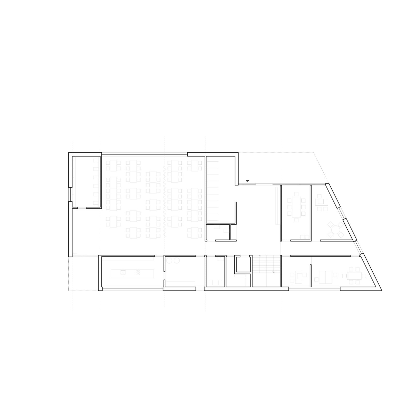 The nursery and canteen programs are integrated in a single volume while keeping a well differentiated separation of spaces. The entries are clearly indicated by the volume and allow an optimization of the operation of the two programs. The ground floor accommodates the spaces dedicated to the new canteen and nursery administration, while the first floor is entirely dedicated to children.