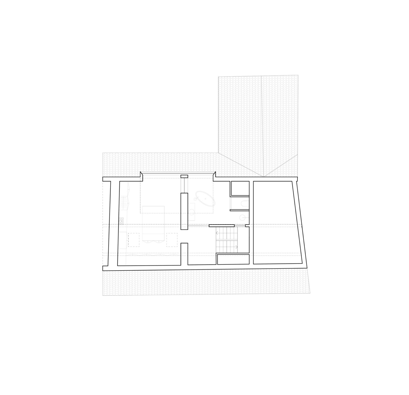 La intervención es mínima y busca mantener el lado masivo de los muros de carga en piedra de las plantas para aligerarse en su última planta con aperturas puntuales que introducen luz debajo de la cubierta. Un paseo arquitectónico ascendente hacia la luz y las vistas que se materializa à través la forma de un nuevo elemento contemporáneo que corona el tejado. Una gran ventana de buhardilla revestida en cobre que que quiere pasar desapercibida por sus formas ligeras para ensalzar los materiales típicos de la construcción tradicional; la madera de la estructura y los aleros, las tejas de barro y los nuevos marcos de piedra.
