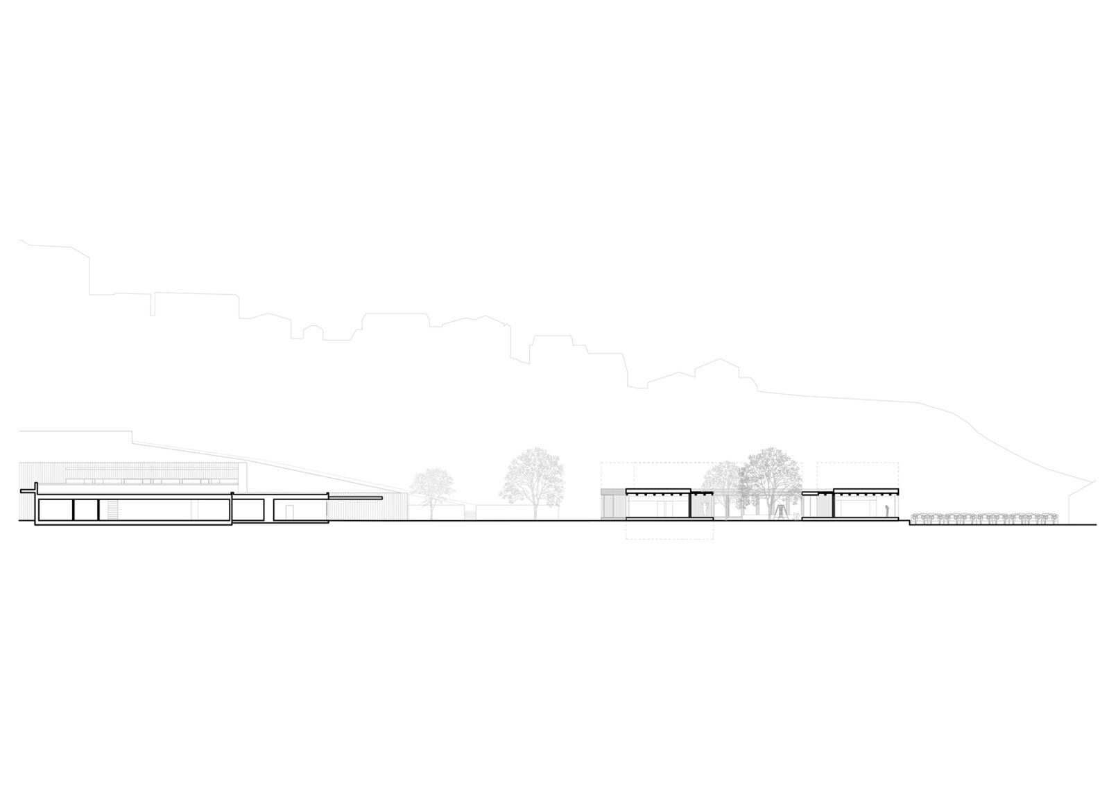 The new construction is located on the north side of the plot, reinforcing the axes and alignments of the surrounding urban landscape through its shape. A compact volume distributes the spaces of the program on a single level allowing full access to all the spaces of the program while limiting the height of the building to enhance the old town. The form of the new building clearly limits a courtyard proposing a new public space . The configuration of the interior spaces follows the typology of the existing building marked by the addition of several volumes organized around the exterior spaces. The new building thus limits the impact of construction on site and gives the new volume a more domestic scale.