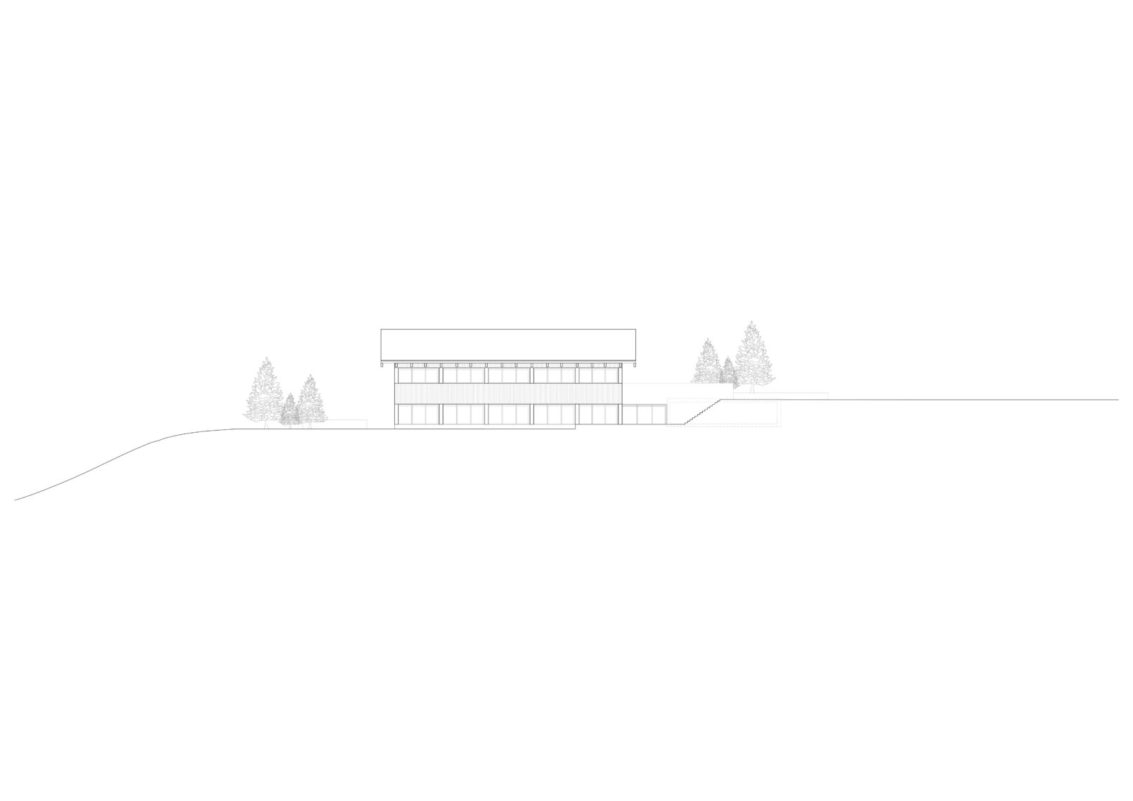Un único volumen compacto divide los espacios del programa en dos niveles. Los programas del centro médico, guardería y sala polivalente se distribuyen por plantas manteniendo una separación de espacios bien diferenciada. La entrada y acceso a cada unidad están indicados por la volumetría y la topografía del terreno de forma clara, permitiendo la operación independiente de los tres programas. El programa dedicado a la guardería se sitúa en una planta semienterrada y permite el acceso directo a los patios ubicados al poniente frente al paisaje. Los espacios polivalentes dedicados a las actividades extraescolares y la sala polivalente se encuentran en la parte trasera del programa educativo con acceso independiente que puede funcionar fuera del horario lectivo. El programa del centro de salud, con las unidades médicas y paramédicas, está ubicado en la planta baja cerca del acceso principal y el camino que conduce al pueblo.